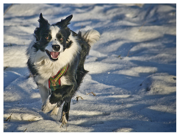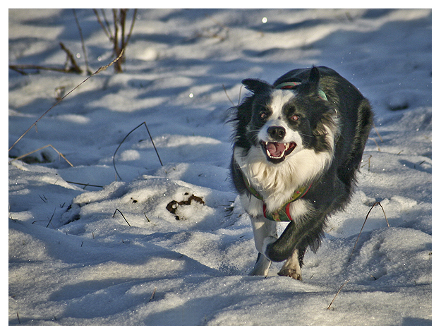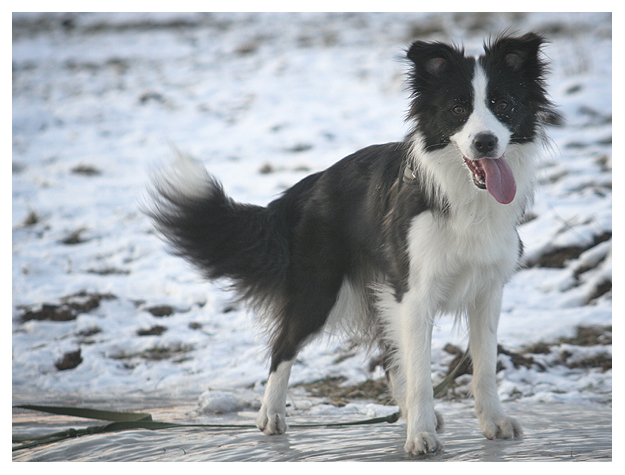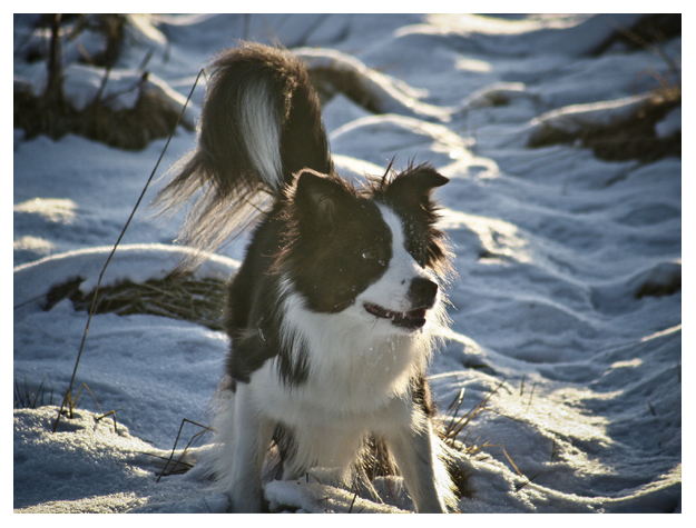 Das sind doch keine Border Collies«, schnitt es durch die kalte Morgenluft. »Die sind doch viel zu klein, echte Border Collies sind viel größer«, fuhr die Stimme fort und bedeutete mit einem – trotz tief sitzender Kapuze – vielsagenden Blick, doch einmal das andere Ende ihrer Leine in Augenschein zu nehmen. »Wenn überhaupt, dann sind ihre noch nicht ausgewachsen. Wie alt meinten sie, dass ihre Hunde sind?«. Zugegeben, der Hund, der sich scheu ans Bein der Frau lehnte, die gerade wild auf mich einredete, erinnerte tatsächlich entfernt an einen Border Collie. Entfernt, weil nicht nur die Länge von Kopf und Schnauze, sondern auch die Fülle der Statur eher an die Liaison eines lüsternen Australian Shepherds mit einer läufigen Colliehündin denken ließen. »Da mögen sie recht haben«, entgegnete ich schließlich und schaute wie zum Beweis traurig die beiden Hunde an meiner Leine an, die gerade ihre Identität eingebüßt hatten. »Man kann den Leuten eben immer nur vor den Kopf gucken«, sagte die Frau und tätschelte ihrem Hund versonnen die schneebesetzte Schnauze, »nehmen sie es nicht so schwer, sie sind bestimmt nicht der Erste, der einem solchen Schwindel aufsitzt, es gibt Züchter, die haben den Namen nicht verdient und sind nur auf das schnelle Geld aus«. Das Lachen, das ich längst hatte unterdrücken müssen, konnte schlussendlich nichts mehr halten. »Wie recht sie haben«, erwiderte ich und wünschte der Frau, deren Gesichtszüge ein wenig verirrt zwischen Unsicherheit und Verwirrung pendelten, einen guten Tag.