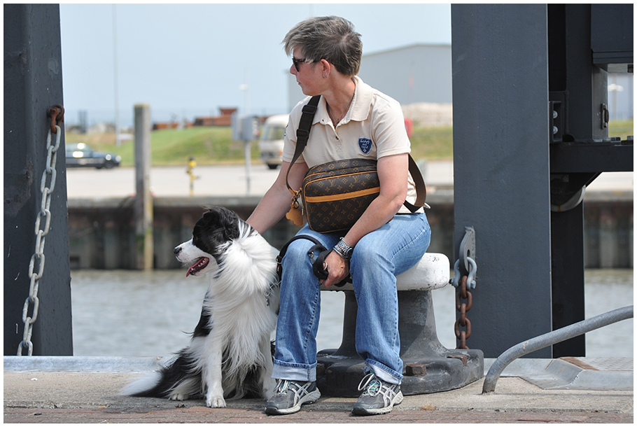 Drei herrliche Wochen Sonne, Strand und Meer. Hingekommen sind wir mit der Fähre, auf die wir aber, als wir in Norddeich/Mole ankamen, erstmal warten mussten. Herrchen und Kleines Herrchen fuhren mit unserem Auto drauf. Frauchen und ich gingen über den Zugang für Radfahrer. Ohne Rad (die Geschichte mit dem Radanhänger kommt gleich) …