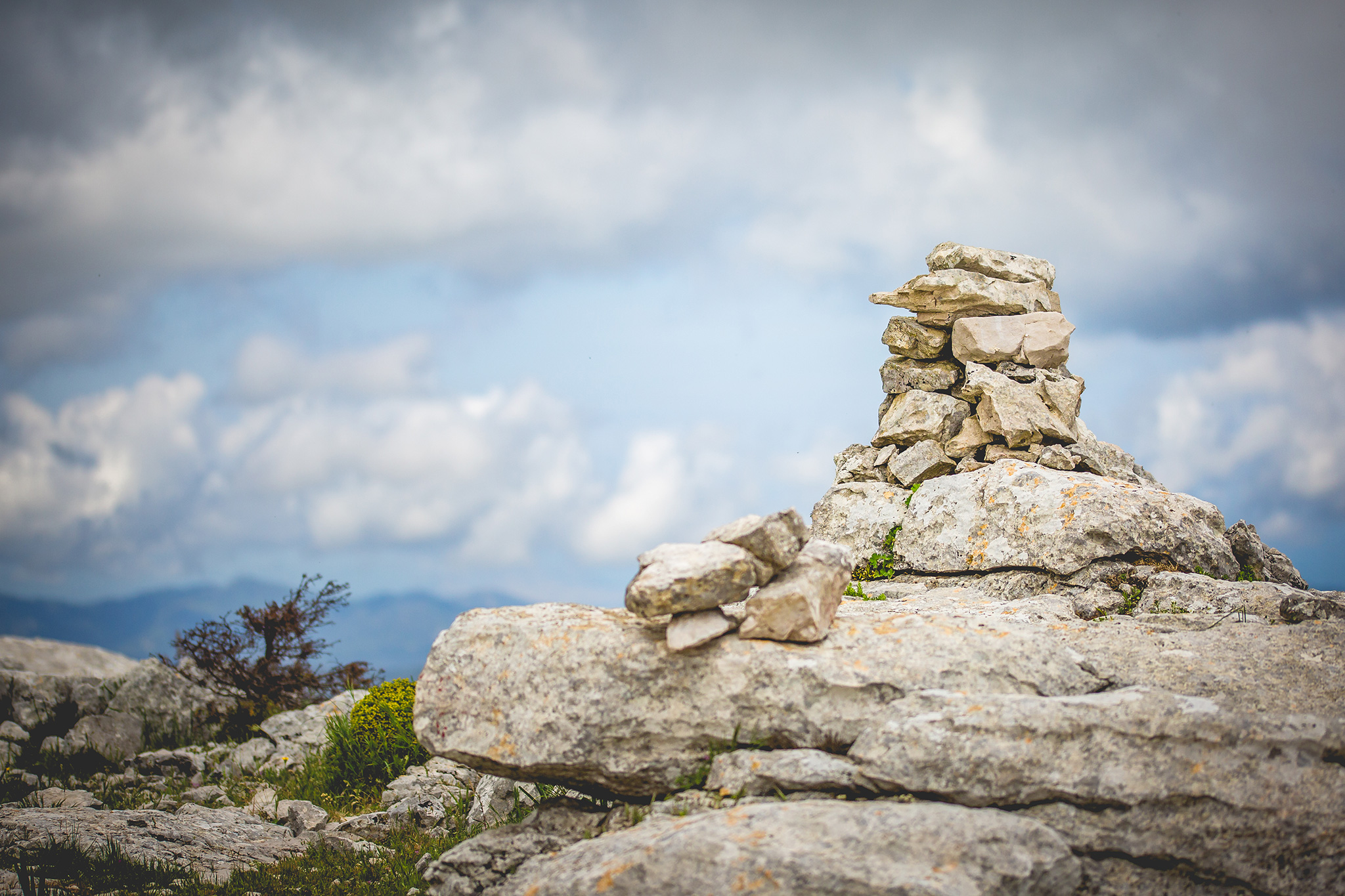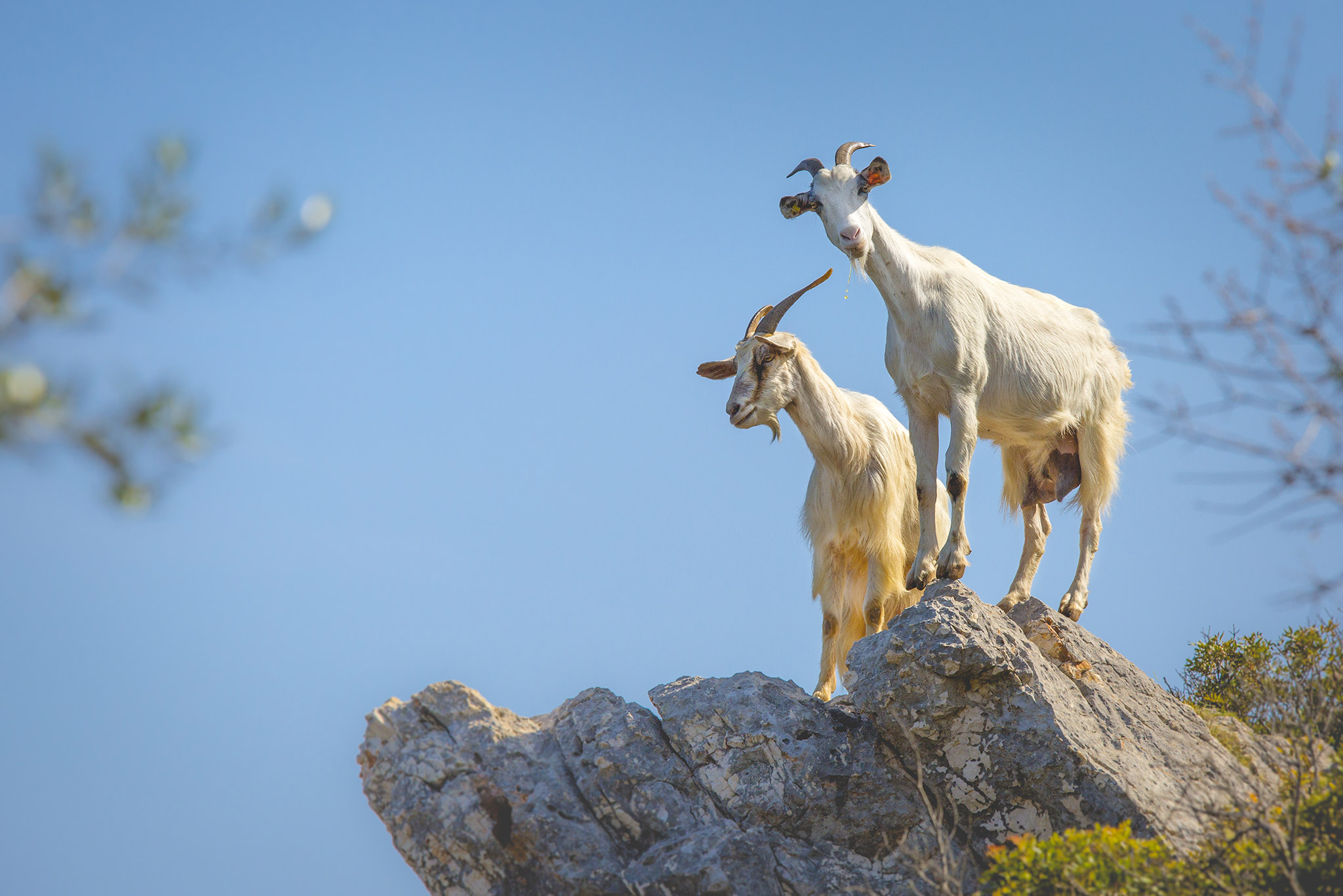 Das Auto an der schmalen Passstraße zwischen Lula und Sant’Anna abgestellt, haben wir nach einer Stunde Gehzeit, in der wir dem steilen Pfad in Kehren immer weiter bergan gefolgt sind, die Baumgrenze und wenig später die blühende Hochebene von Su Campu ’e Susu erreicht. Affodill und Heiligenkraut wachsen zwischen den weißen Hügeln, hier und da Wacholder und windschiefe Steineichen. Wir rasten unter einer der Letzteren, lassen die Hunde trinken und schließlich – weil außer den Steinmännchen, die gut sichtbar den Weg durch die Ebene leiten, keine Menschenseele zu sehen ist – alle Vier von der Leine. Nach einer weiteren Stunde – wir haben die Ebene überquert und sind über Geröll und glatte Kalkfelsen fast bis zum Gipfel gelangt – rasten wir unter dem Wegweiser zur Punta Catirina erneut, bevor wir kurz zum Gipfelkreuz spazieren, um schließlich den Abstieg in Angriff zu nehmen. Der stellt sich als weitaus beschwerlicher dar als der Aufstieg, weil lose Steine und Geröll mehr Trittsicherheit verlangen, so dass wir mehr als erleichtert sind, den Taleinschnitt von Nurai zu erreichen, der uns – das Klingeln von Schafsglocken im Ohr – durch dichte Wälder führt und endlich auf einer asphaltierten Straße endet. Auf den eingezäunten Weiden, die den Weg zurück zum Ausgangspunkt säumen, grasen Kühe, ein paar Hunde – die gleich wieder verschwunden sind, als sie unser Rudel erblicken (»Quattro cani!«) – stellen sich uns bellend in den Weg, dann haben wir – zwar verschwitzt, aber trotz der Pausen in unter vier Stunden – das Ende unserer ersten Wanderung erreicht. Die Hunde springen begeistert ins Auto – und schlafen beinahe auf der Stelle mit einem beseelten Grinsen (»Molto bello!«) ein.