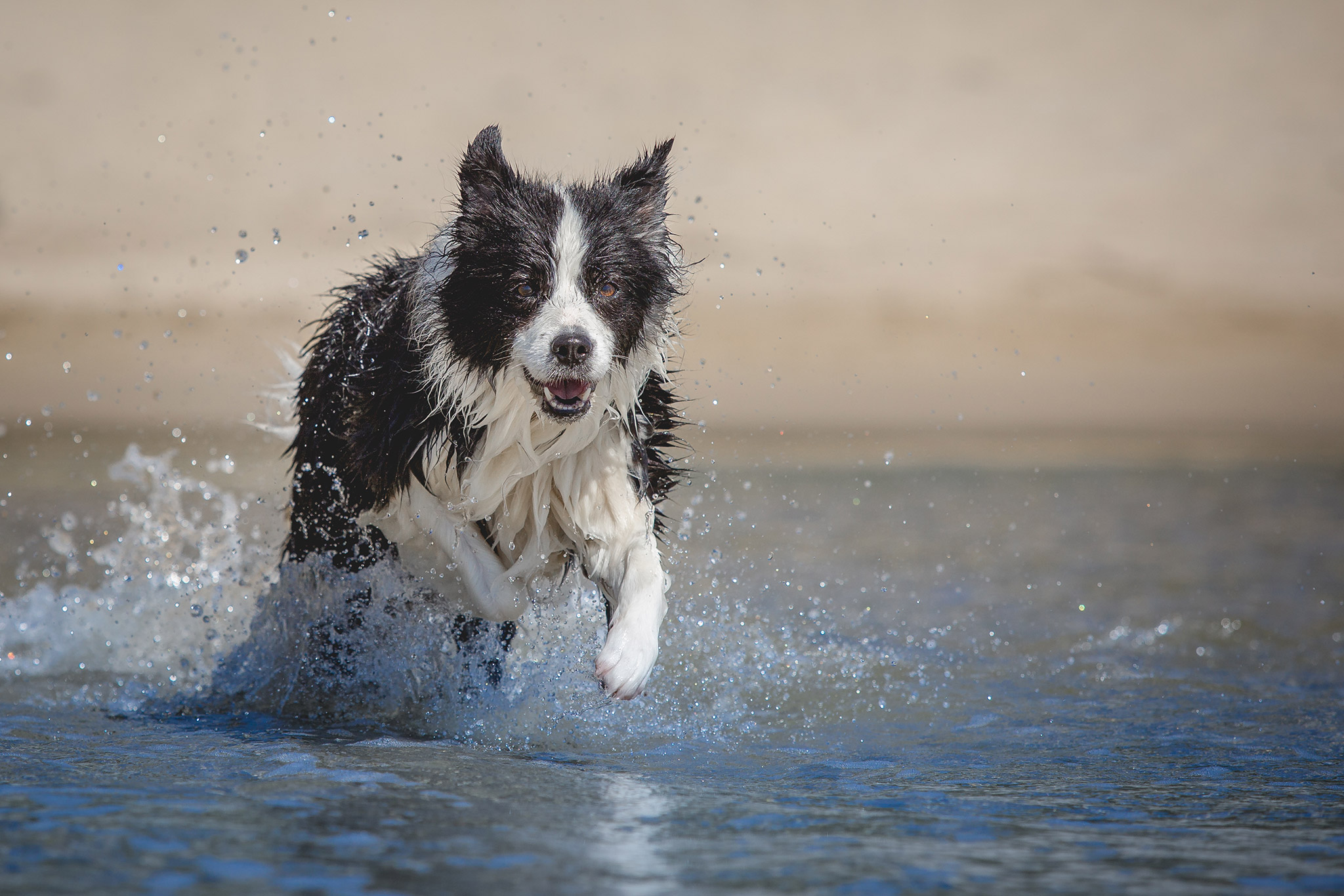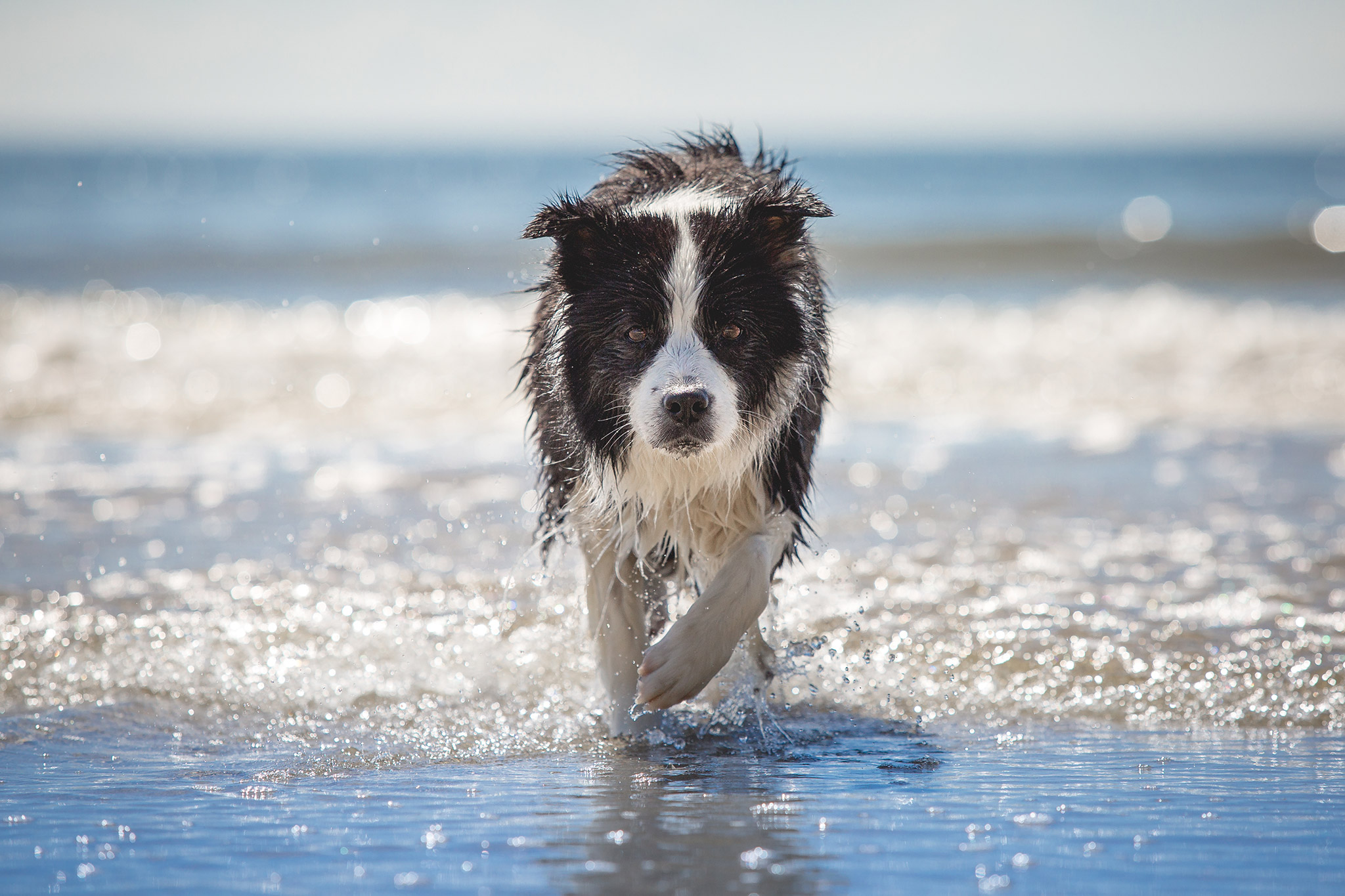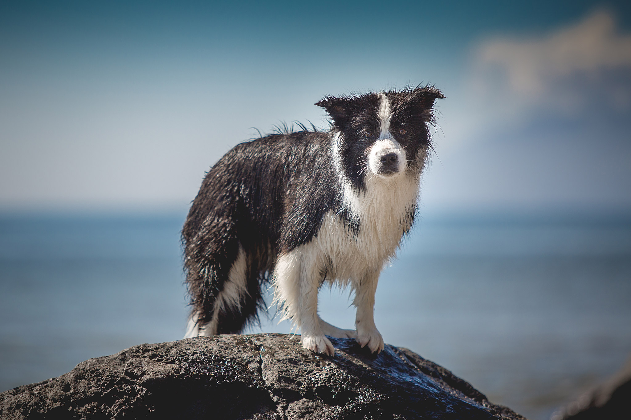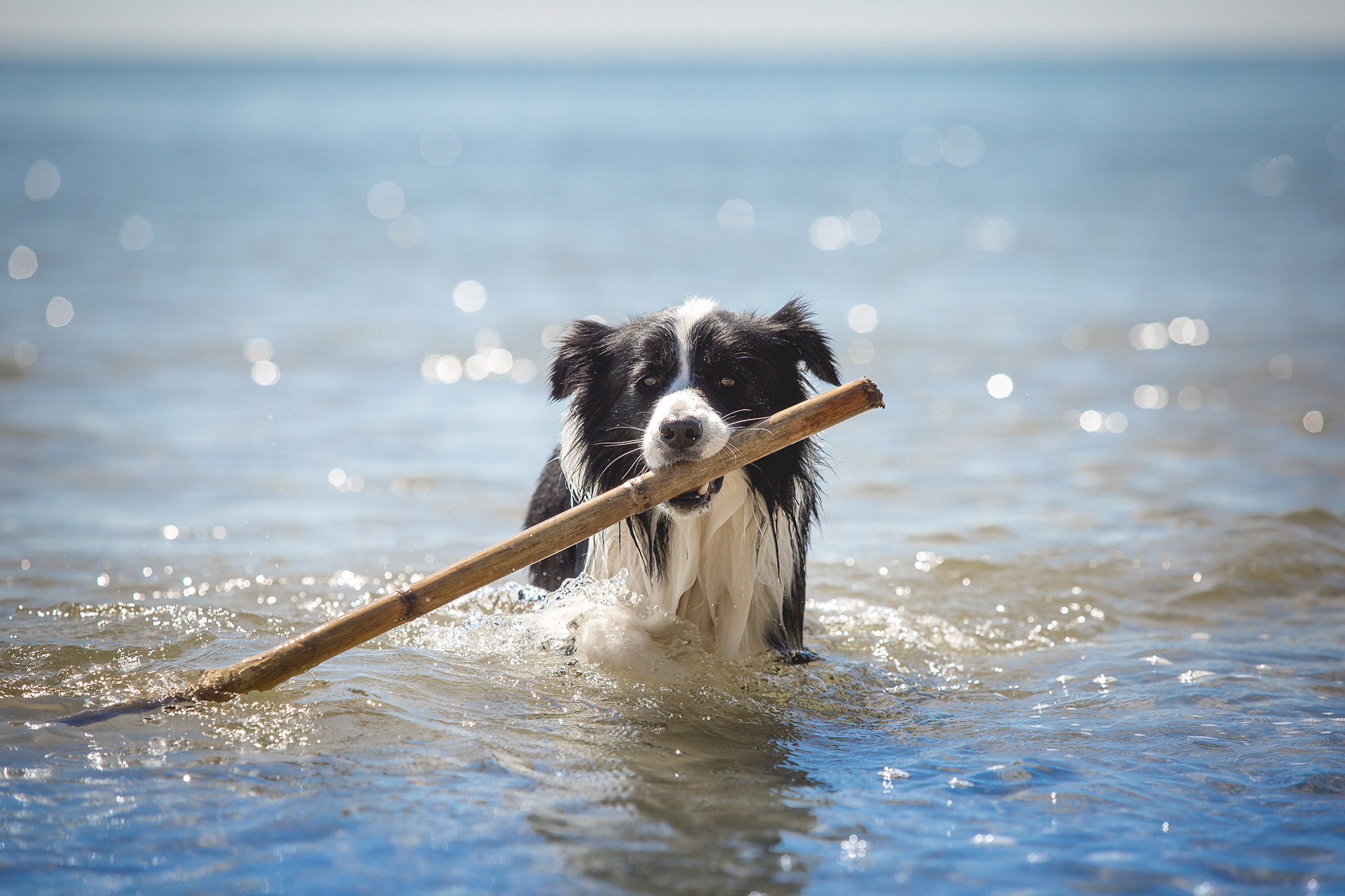 Den Tag darauf verbringen wir am Strand, der genauso leer ist, wie wir erwartet haben: nur zwei weiteren Badegästen begegnen wir am Hundestrand, der sich von unserem Ferienhaus fußläufig hinter der Hafenmole von Osalla befindet, am weitläufigen Sandstrand links davon – an dem offiziell keine Hunde erlaubt sind – bleiben wir ganz allein. Nell, Ida und Zion – die Augen vor Freude weit aufgerissenen – stürzen sich gleich in die Fluten, während Heidi am Ufer zurückbleibt und das Spiel der Wellen, die sich laut an den grauen Felsen brechen, kritisch beäugt. Weil meine neue Badehose ohnehin eingeweiht werden will, nehme ich unsere Jüngste kurzerhand auf den Arm und mit ins kühle Nass – und gebe der unsicher paddelnden Hündin den ersten, wenn auch nicht ganz freiwilligen Schwimmunterricht.