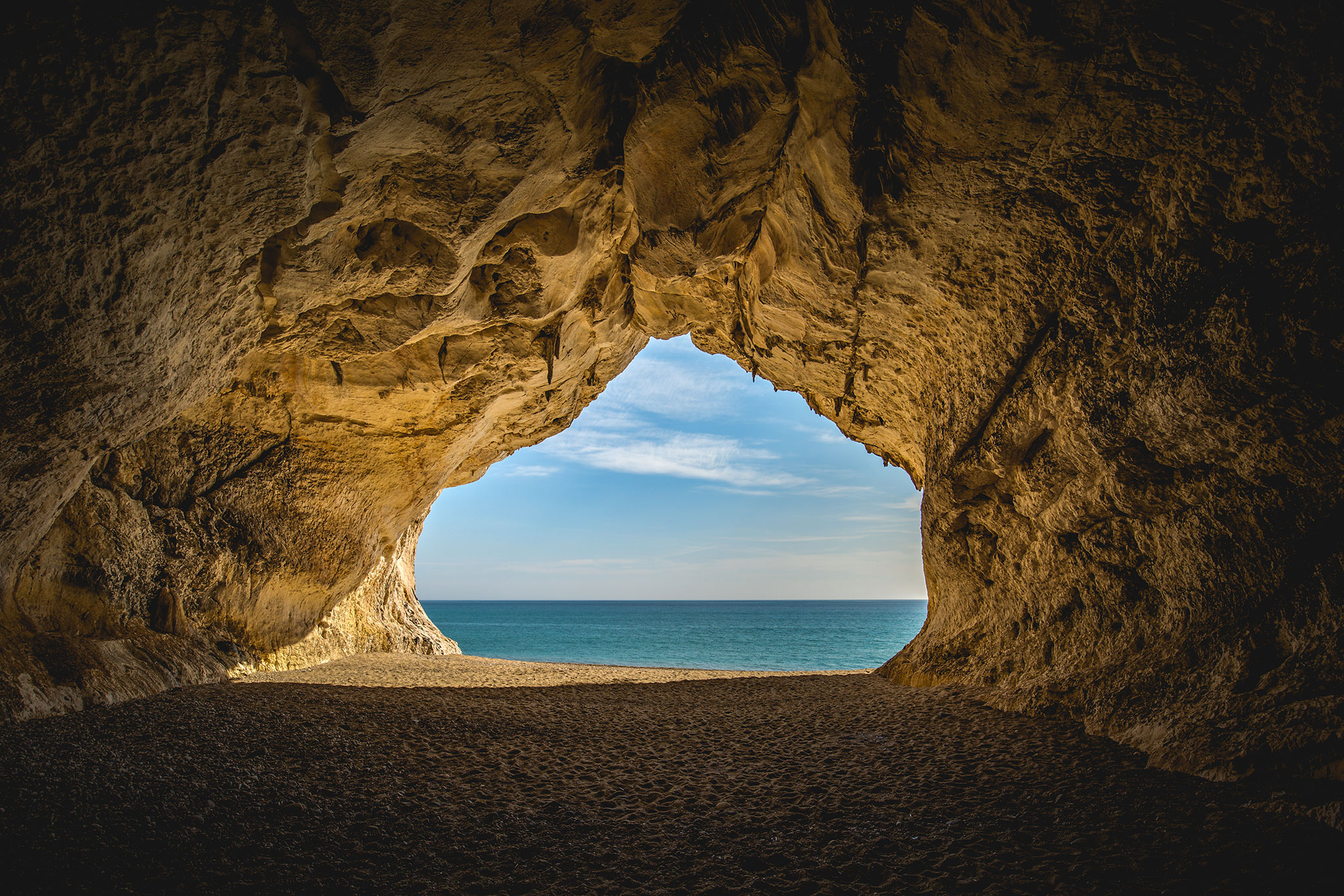 Die aus zehn, vielleicht zwölf Menschen bestehende Reisegruppe, die vor uns am Strand angekommen ist – allesamt Australier, die sich freundlich nach unserer Herkunft erkundigen und mit lautem »Ah!« und »Oh!« den Hunden zuwenden –, hat schnell den Rückweg eingeschlagen (später sollen wir der Wandergruppe noch einmal begegnen), so dass uns die Bucht tatsächlich ganz alleine gehört. Keine Wolke am strahlend blauen Himmel, das Wasser schimmert grün und klar – und in den mächtigen Karsthöhlen, die die Zeit in die von Wind und Wetter fast glattgeschliffenen Felswände gegraben hat, findet sich immer ein schattiges Plätzchen. »Wenn das Paradies so aussieht«, sage ich, »wozu dann noch weiterleben?«. Vielleicht, um eine Runde zu schwimmen, meinen die Hunde. Und das tun sie dann auch.