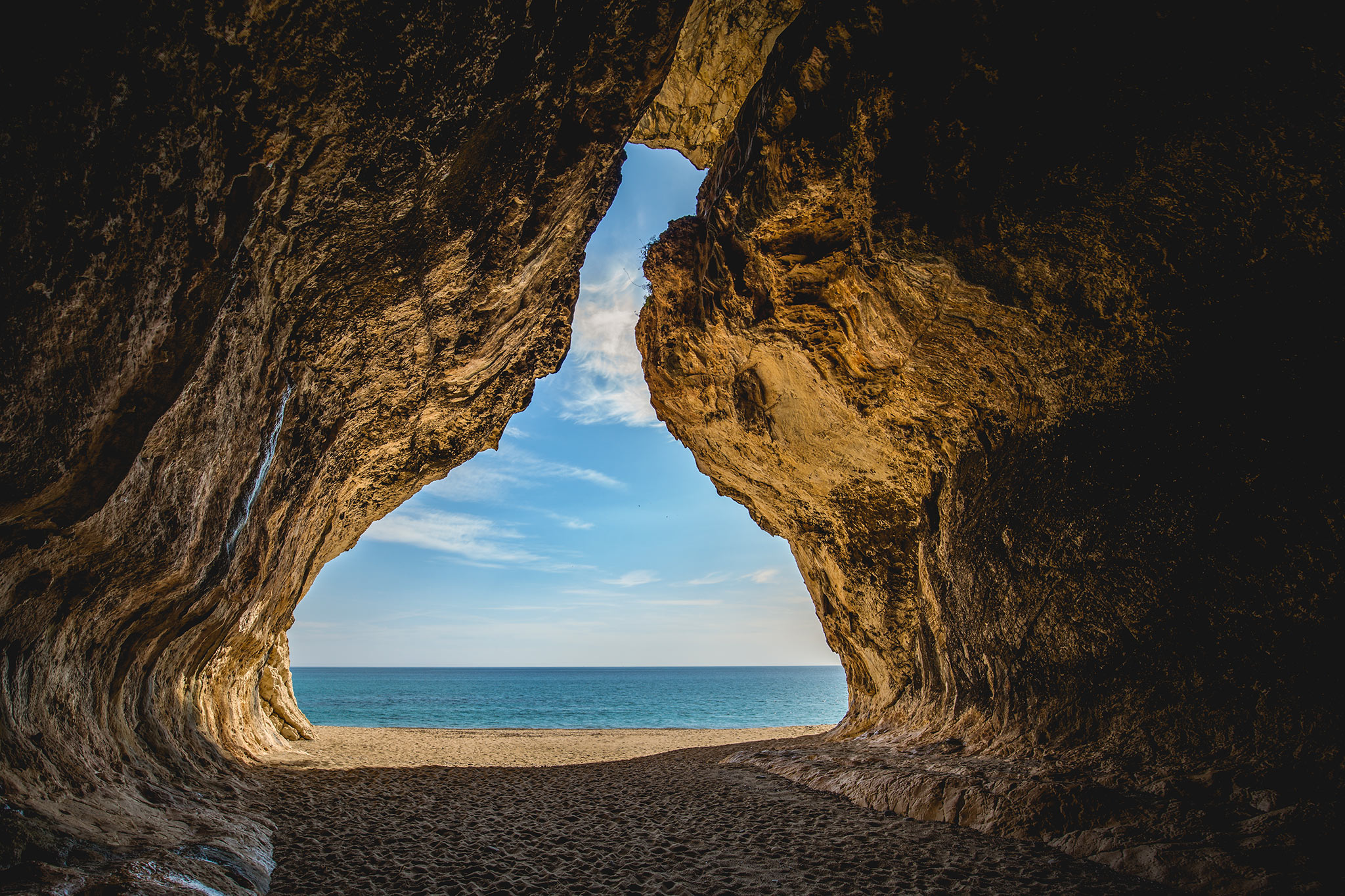 In jedem Reiseführer, den man zur Hand nimmt, wird man Ziele finden, die mit einem großen Ausrufezeichen und als unbedingt sehenswert markiert sind. Die abgeschiedenen Buchten im Golf von Orosei, die sich nur mit dem Boot oder über mehrstündige, zum Teil recht beschwerliche Wanderungen erreichen lassen, gehören ganz ohne Zweifel dazu. Eine davon – vielleicht die Schönste im ganzen Mittelmeer – soll den Abschluss unserer ersten Urlaubswoche bilden: die Cala Luna – die Bucht des Mondes. Um uns nicht gemeinsam mit hunderten anderer Touristen über die zerklüfteten Hügel schieben zu müssen und die Schönheit der sichelförmigen Bucht vielleicht sogar noch vor der Ankunft der ersten Ausflugsboote genießen zu können, brechen wir – festes Schuhwerk und genügend Trinkwasser für uns und die Hunde im Gepäck – im ersten Sonnenlicht nach Cala Gonone auf, wo wir das Auto gleich hinter der Absperrkette an der Caletta Fiuli abstellen. Außer unserem Fahrzeug parkt am Ende der engen Küstenstraße bloß ein Wohnmobil, das hier – zwar unerlaubt, aber offenkundig geduldet – über Nacht abgestellt worden ist: wir sind allein.